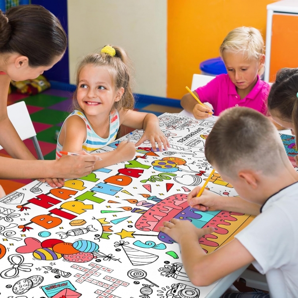 Les nappes en papier à colorier sont un moyen tellement amusant d'impliquer vos invités pendant votre fête. Le papier repose directement sur la table afin que tous les invités puissent contribuer à colorier le design.