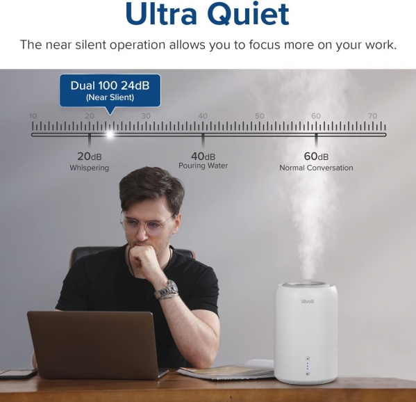 Style:Dual 100 White Features: Power Supply: AC 100–120V 60Hz Whisper-Quiet Operation: Less than 28dB Material: BPA free safety for children and adults alike Run Time: 8–20 hours Zero Light Pollution: The lights can be turned off completely with sleep mode Auto Shut Off: When it’s water level is low or it’s tank is removed 3 Mist Speed Settings: High / Medium / Low Mist Settings Intelligent Sleep Mode: Automatically maintain a comfortable humidity level to let you sleep soundly Note: Please do not add water directly into the base. If the humidifier does not work properly, (e. g.: the humidifier can’t turn on, no mist coming out, etc.), most problems can be addressed by the follow instructions: 1. When cleaning or emptying the base or tank, be careful to prevent water from getting inside the air outlet. 2. When assembling the mist tube after cleaning, make sure it aligns with the mist outlet. Do not block the mist outlet. 3. Clean the transducer and insulation ring regularly to ensure that mist can come out properly. For a diagram of product parts, see the manual. 4. When cleaning your humidifier, follow the disassembly and reassembly instructions in the manual to ensure that mist can come out properly.