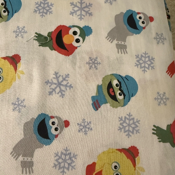 Get festive this holiday season with this 100% cotton crib sheet for your full size crib rental. Featuring adorable Sesame Street characters.