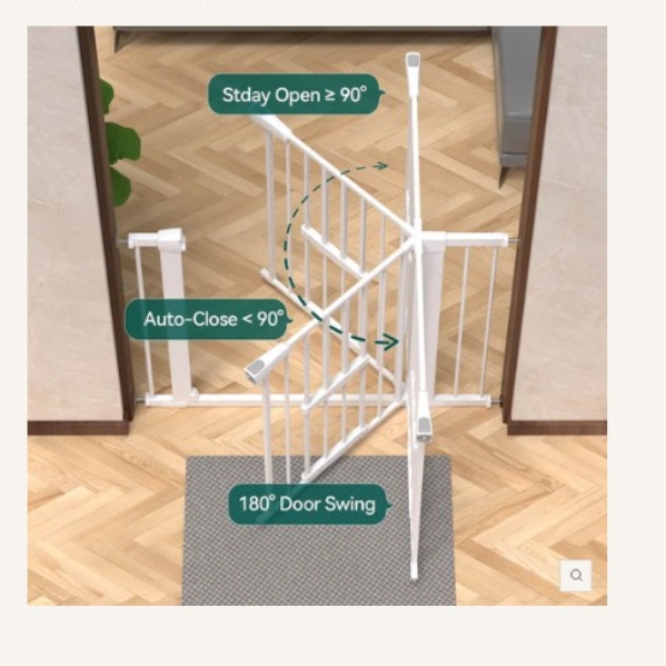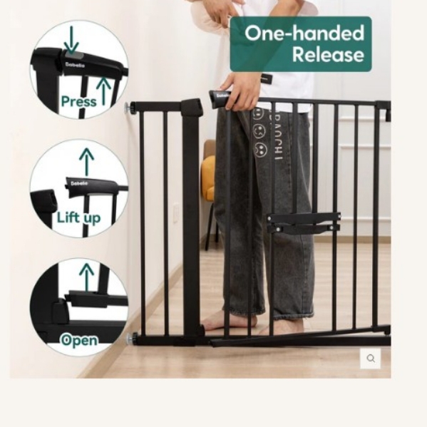 The Babelio metal walk through CatPrivilege expandable baby and pet gate has a walk through door.