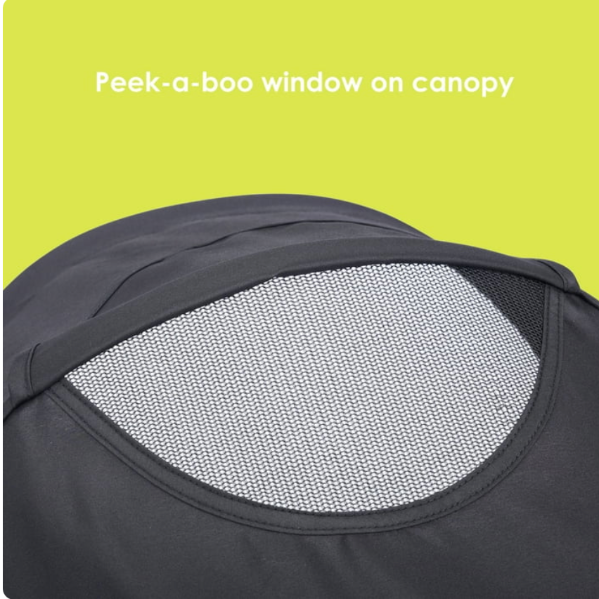 ✅ Large adjustable canopy with peek-a-boo window
