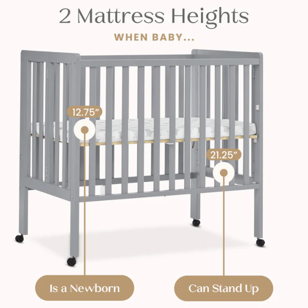 Built from sturdy wood with smooth-rolling wheels, it’s easy to move from room to room so you can always keep your baby close. And when it’s time to pack up, it folds flat in seconds, making storage and transport simple.