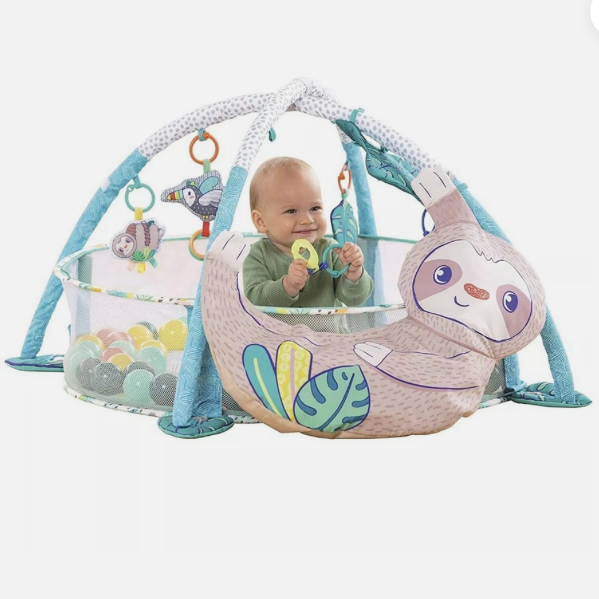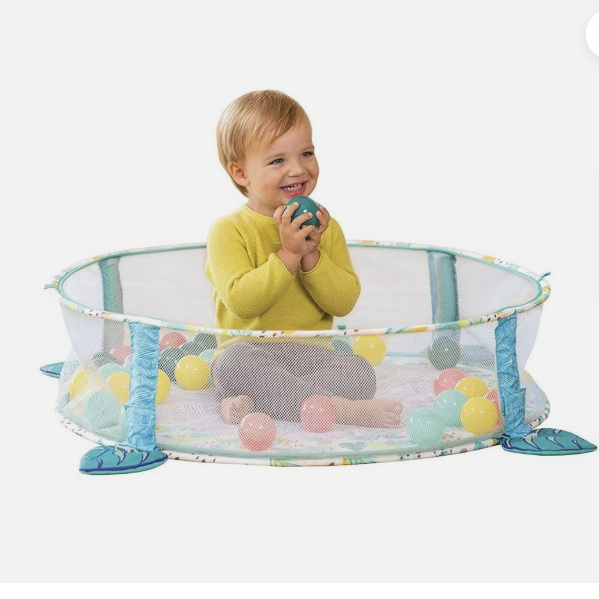 • 4-in-1 design: overhead play, tummy time, sit & play, and toddler ball pit