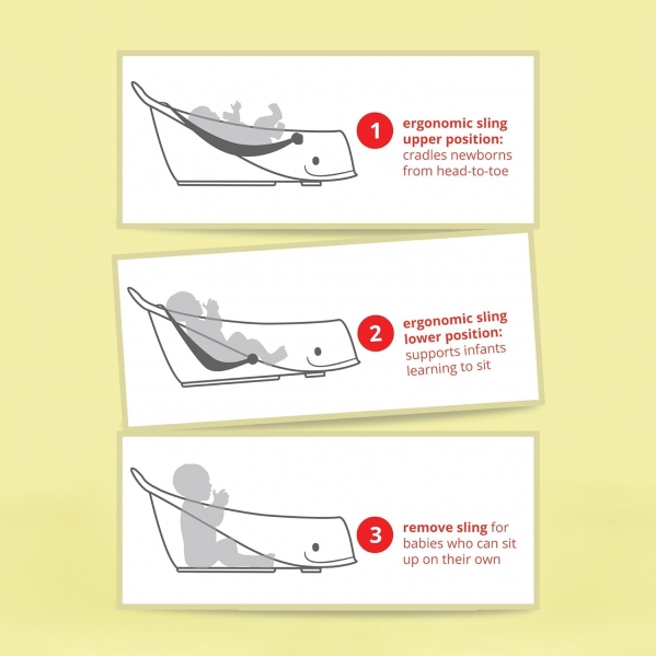 Make bath time fun and easy with this whale-shaped “Baby Beluga” tub! The Smart Sling™ supports newborns and adjusts as your baby learns to sit. Soft, comfy, and spacious, it keeps little ones safe and cozy — and grows with your baby for multiple stages of bath time.