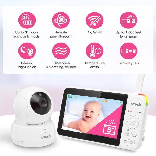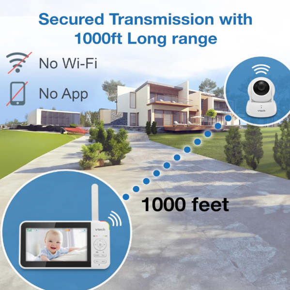Keep an eye on your little one with this secure, Wi-Fi-free baby monitor. Perfect for rentals or travel, it provides reliable audio and video monitoring without using the internet, giving you extra privacy and peace of mind.