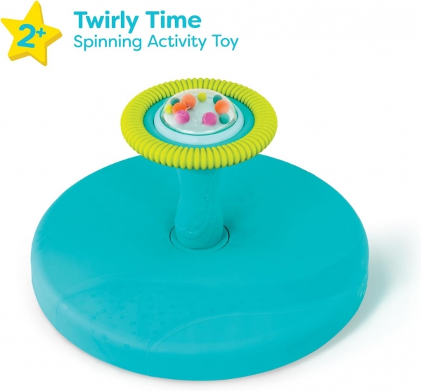 Spin, play and whirl with Twirly Time from B. play! This interactive seat is sized just right for toddlers and it comes with fun features to explore. Little ones can play with the colorful bead popper on top, just push down to make it go pop, pop, pop! When they're ready to spin, kids can sit down on the sturdy base and get comfy. All kids need to do is grab the textured, easy-grip handle and turn it to start twirling! The seat base is where the spinning actually happens but kiddos can control the fun by using the handle! Not only is it fun, but playing with this spinning activity seat can help improve physical development and coordination too. Recommended for toddlers 2 years and over. B. sure to check out B. play’s playroom pals – B. toys, B. baby, and B. spaces!