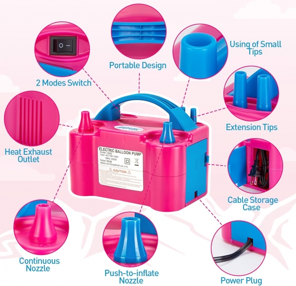 Rent Baby Gear INCLUDING Electric Air Balloon Pump, AGPTEK 110V 600W Rose Red Portable Dual Nozzle Inflator/Blower for Party Decoration | BabyQuip