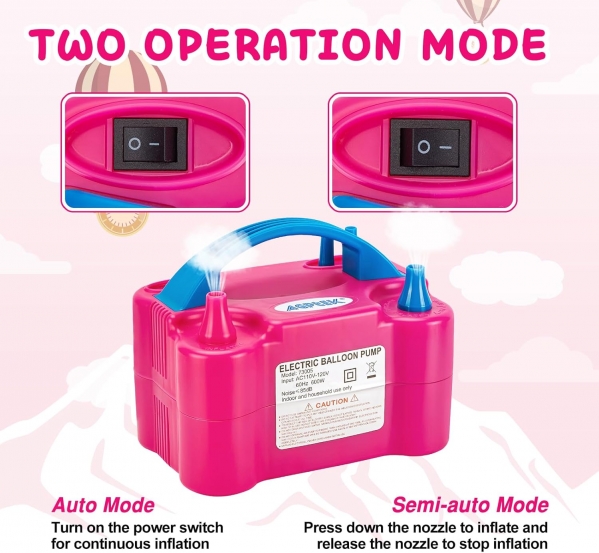Electric Air Balloon Pump, AGPTEK 110V 600W Rose Red Portable Dual Nozzle Inflator/Blower for Party Decoration