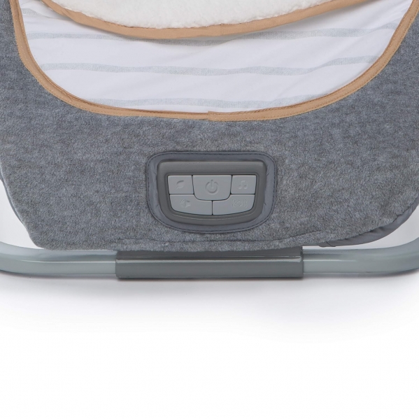 This sleek and stylish baby seat is where contemporary design meets ultimate comfort. With three distinct recline positions, it easily adjusts to keep your little one cozy and content. The seat gently rocks or converts into a stationary mode featuring soothing vibrations, calming nature sounds, and gentle melodies.