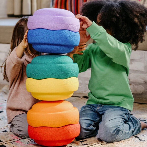 Let their true colors shine. The Original rainbow features the bright colors of the rainbow, inspiring imaginative play and all-day fun. In addition to stacking, our sustainable and durable stones can be used in endless ways and are strong enough for sitting, climbing, and tossing. Offering open-ended play and multiple use cases, our Original rainbow makes an excellent addition to playtime and beautifully complements the homes they live in.