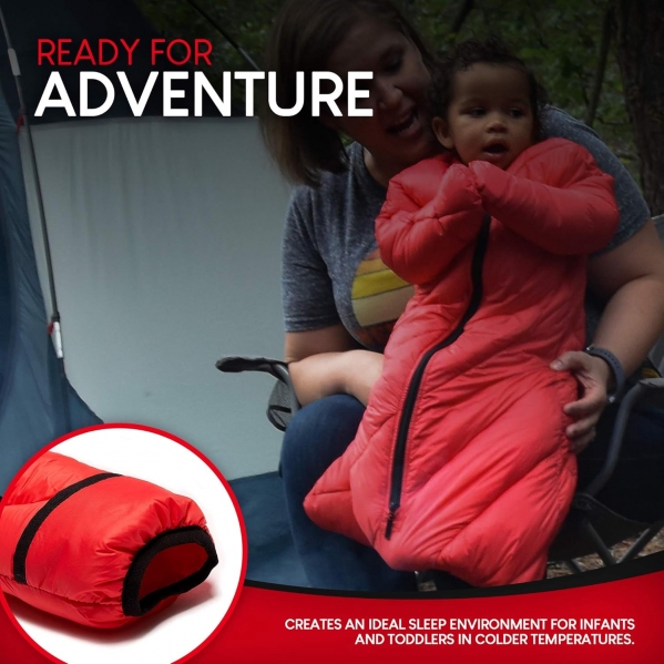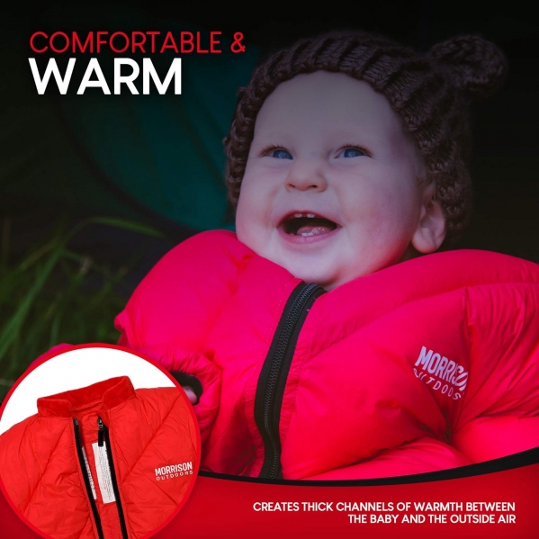 Keep your baby comfortable your next camping trip with the Morrison Outdoors “The Little Mo” sleeping bag. Sized for ages 6-24m
