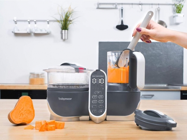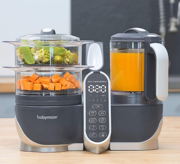 PRODUCT DESCRIPTION The Duo Meal Station makes up to 9 cups of food and up to 25 meals. Steams and blends simultaneously. Makes preparing nutritious vitamin rich foods simple and easy. 3 speeds and a multipurpose blade creates just the right texture for each stage of eating. 10 programmable settings and audible alert when done makes cooking easy. 2 trays allow for multiple ingredients steamed simultaneously.