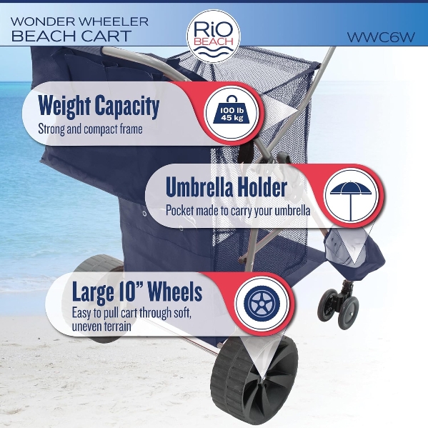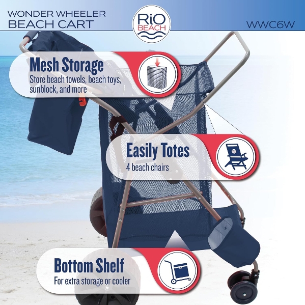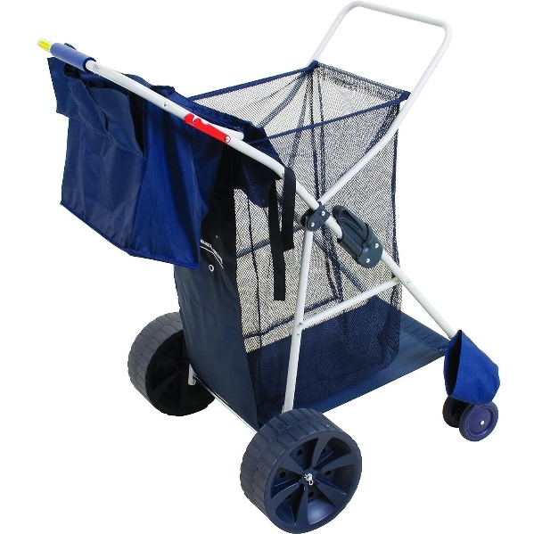 PREMIUM BEACH CART: Features a large mesh storage pouch, perfect for storing beach towels, beach toys, sunblock, and more. Insulated beverage compartment keeps drinks and snacks cold