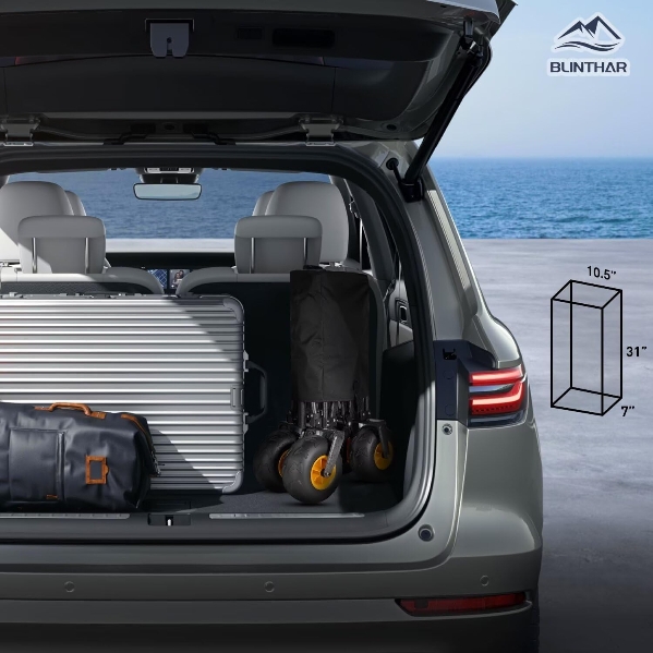 【Large Capacity】The BLINTHAR foldable wagon offers an expanded size of 35.4" x 19.7" x 23.6"; Balloon Wheel Size: 9" x 4"; Inner Dimensions: 35.4" x 18.1" x 13". When folded, it measures just 10.5" x 7" x 31", making it easy to fit into any car.Retractable handle telescopes up to a height of 37.5" for pulling comfort and ease of use.