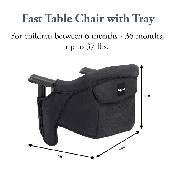 CONVENIENT STORAGE: The Fast Table chair features a rear pocket for essentials, a removable, washable cover, and a carry bag for easy transport. This foldable, collapsible highchair is ideal for a compact, space-saving solution at home or on-the-go.