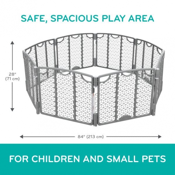 The Evenflo® 8-Panel Versatile Play Space offers more than 34.5 sq ft of safe, enclosed fun! When you’re done, fold and go! Smooth edges and a molded handle make the Versatile Play Space easy to take anywhere for secure playtime on the go.