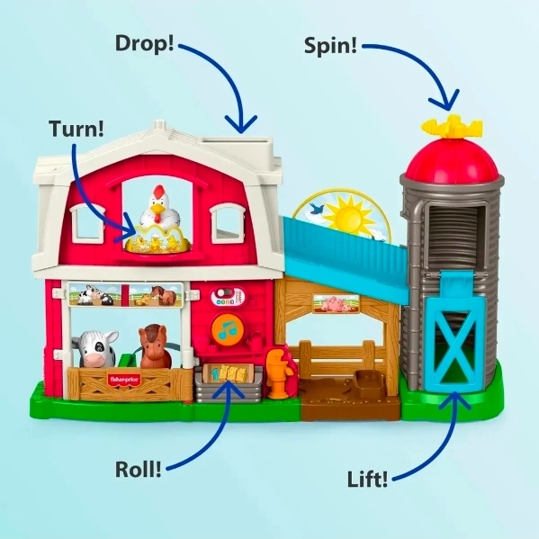 This toy bundle is perfect for your little animal lover! Over 55 educational songs, sounds and phrases; open and close the barn door or press the Discovery Button or water pump to activate them.