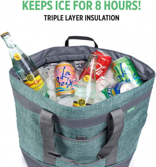 Extra-Large 21 x 17 x 8 Inches: Soft sided cooler is sized to hold up to 30 cans when zipped and there’s plenty of room for cold groceries when shopping! This portable cooler is perfect for the pool, camping, travel, picnics, or tailgating