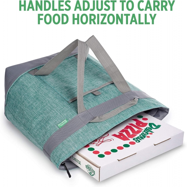 Hot Food Stays Hot: The sturdy webbing belt handles adjust to carry pizza, carry-out and home cooked dishes horizontally to avoid spills, while the 3 layer travel cooler keeps your food hot as you drive across town! Inside easily wipes clean
