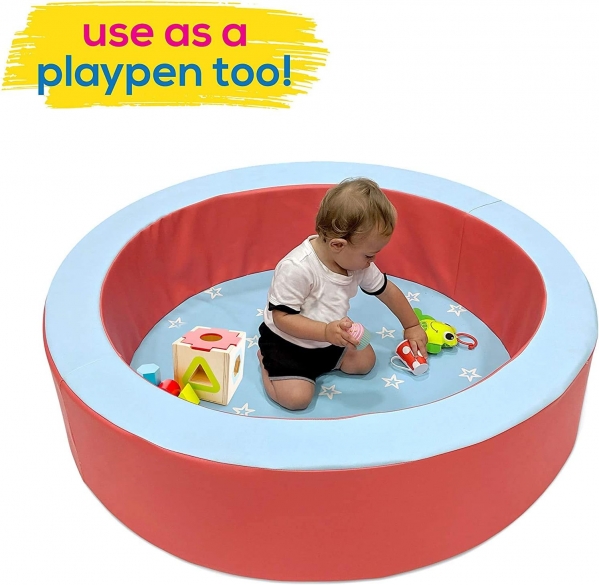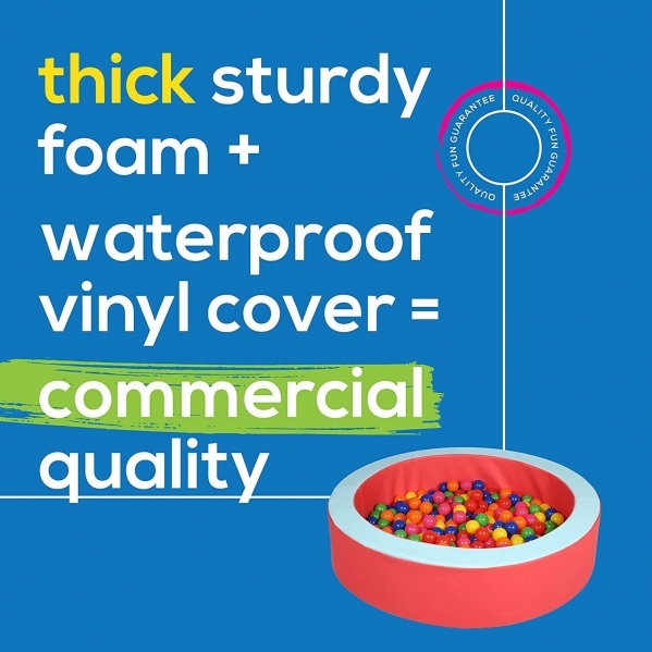Commercial quality watedproof vinyl ball pit with brightly colored balls. Please let us know if you would prefer pastel colored balls.