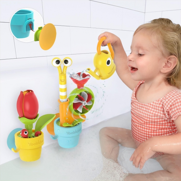 Yookidoo Toddler Baby Bath Toy (Ages 1-3) Garden Adventure Set Bundle: Snail & Flower with Watering Can (Mold Free) Attach to Any Tub or Shower Fun for Bath Time - Great for Boys , Girls , & Kids