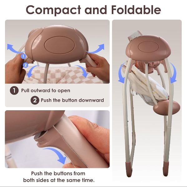 This baby swing offers gentle 5-speed rocking with whisper-quiet operation under 40dB to help soothe even the fussiest little ones. It features a secure 3-point harness, non-slip base, and built-in music with adjustable volume and auto-off timers (10, 15, or 30 minutes). The detachable toy bar supports sensory and motor development, while the breathable, easy-clean fabric keeps baby comfortable. A smart, safe, and stylish swing for peaceful playtime and relaxation.