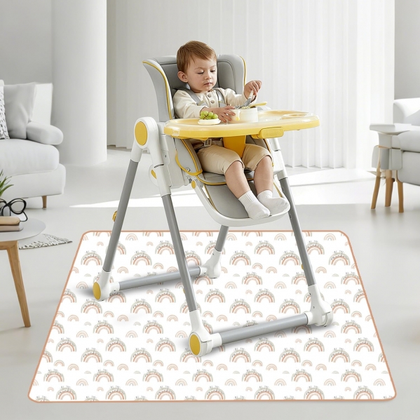 Baby Splat Mat for Under High Chair, 51 x 51 Inch Wipeable Splash Mat,Floor Protector,Wipe-Clean Tablecloth and Playing Mat (Rainbow)