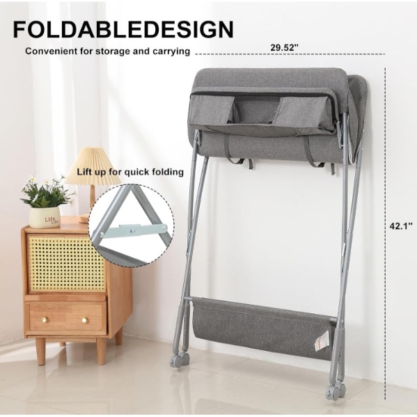 Save your back and make diaper changes easy with this space-saving diaper changing station. Designed with 4-Level adjustable heights, which offers customization for renters.