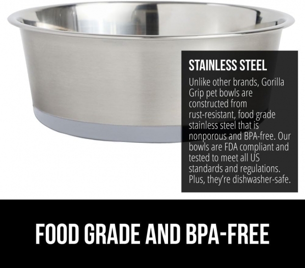 Gorilla Grip Small Stainless Steel Metal Dog Bowl (16 fl oz)