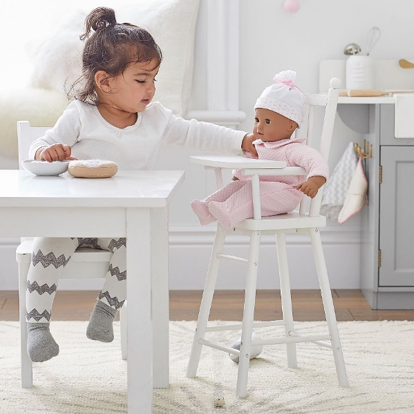 Your little will have a ball taking care of Baby Leila with all the gear they need. Wooden high chair and bunk bed ensure Leila gets the best sleep and three meals a day. The glitter stroller allows her to tag along on important errands around the house.