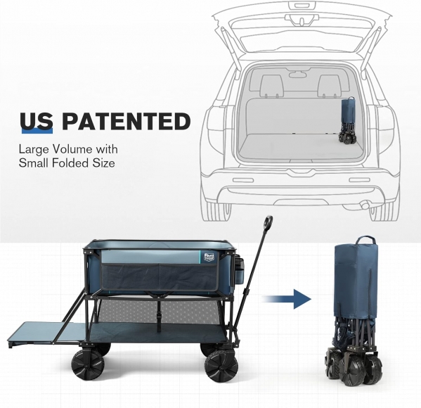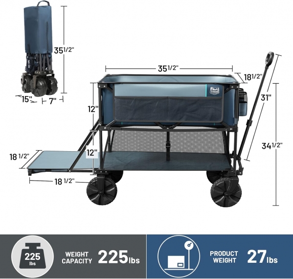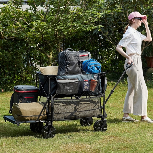 TIMBER RIDGE 400L Large Capacity Folding Double Decker Wagon with Brakes, 450lbs Heavy Duty Collapsible Cart, All-Terrain Big Wheels for Camping, Sports, Shopping