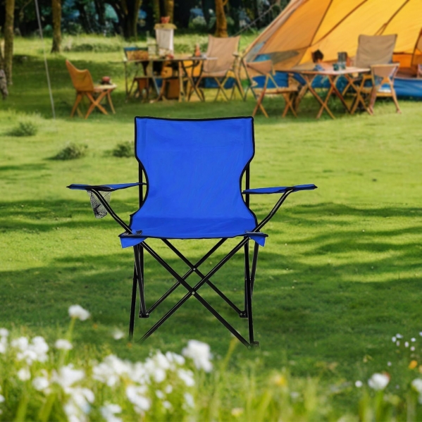 The classic camp chair! Comfortable canvas chair perfect for parades, ball games, camping, or any outdoor event. Colors vary.