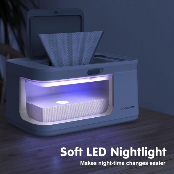 Baby Wipe Warmer Baby Wet Wipes Dispenser, Cozygrow Diaper Wipe Warmer with LED Light & Transparent Viewing Window, Adjustable 95℉-131℉, 1.5 Meter Plug Cord