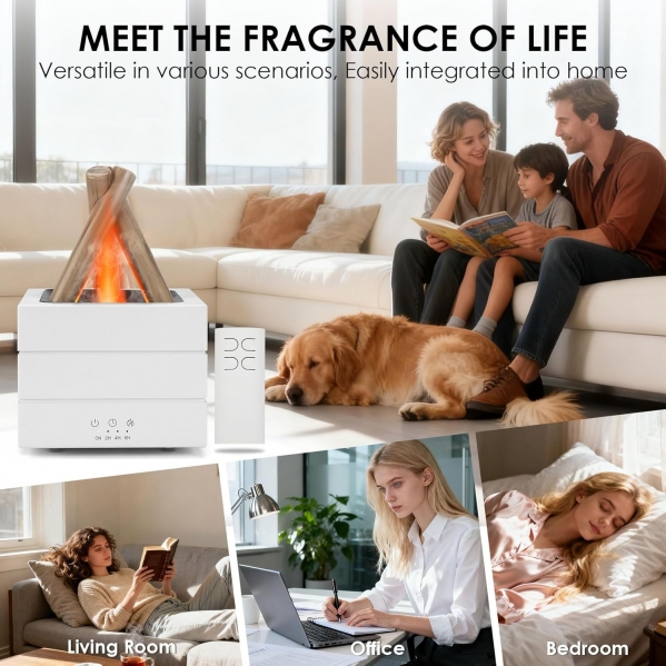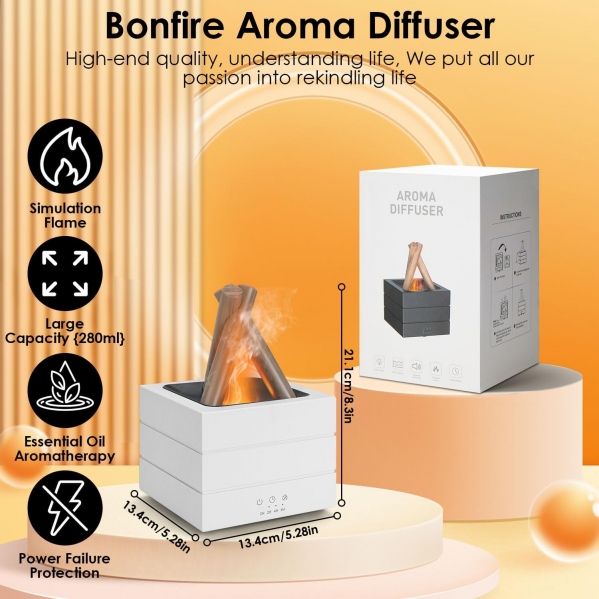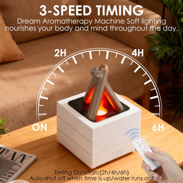 Flame Diffuser for Essential Oils, 280ML Ultrasonic Aromatherapy Humidifier with 7 Color LED Lights, Auto Shut-Off, 2H/4H/6H Timer & Remote, Aroma Diffusers for Home Office Yoga Decor Gift