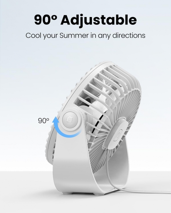 Gaiatop USB Desk Fan, 3 Speeds Strong Airflow, 5.5 Inch Portable 90° Rotate Quiet Cooling, Small Personal Table Fans for Bedroom Home Office Travel White