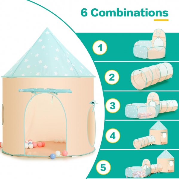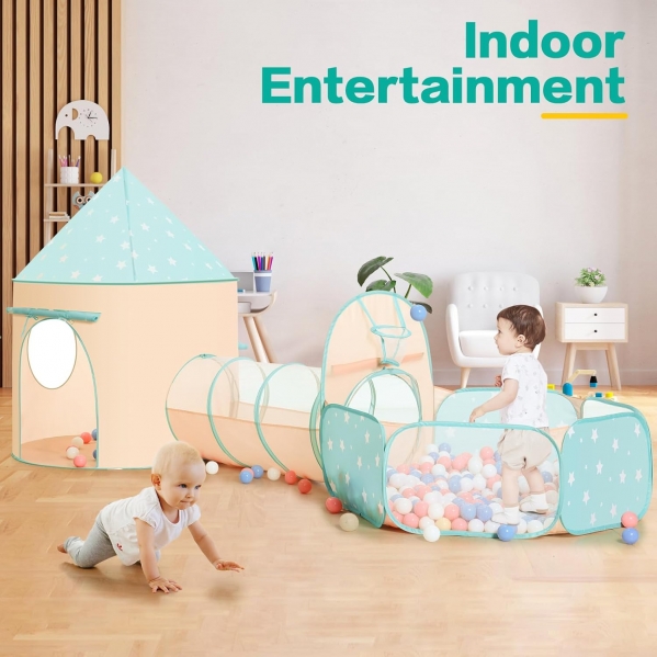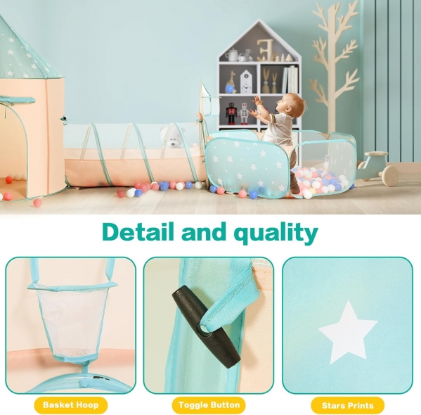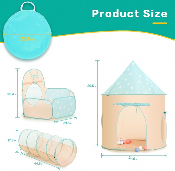 Rent Baby Gear INCLUDING PigPigPen 3pc Kids Play Tent for Girls and Boys with Ball Pit, Crawl Tunnel, Princess Tents for Toddlers, Baby Space World Playhouse Toys, Boys Indoor& Outdoor Play House, Perfect Kid’s Gifts 3PC Orange & Green Star Play Tent | BabyQuip