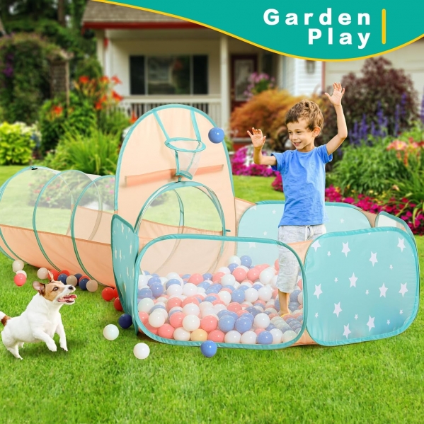 PigPigPen 3pc Kids Play Tent for Girls and Boys with Ball Pit, Crawl Tunnel, Princess Tents for Toddlers, Baby Space World Playhouse Toys, Boys Indoor& Outdoor Play House, Perfect Kid’s Gifts 3PC Orange & Green Star Play Tent