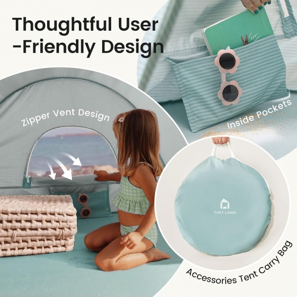 Rent Baby Gear INCLUDING Tiny Land Baby Beach Tent – Pop Up Baby Tent with UV Protection, Portable Baby Beach Essentials, 35"x28"x32" Sun Shelter for Infants, Baby Outdoor Use (Pastel Aqua) | BabyQuip