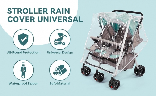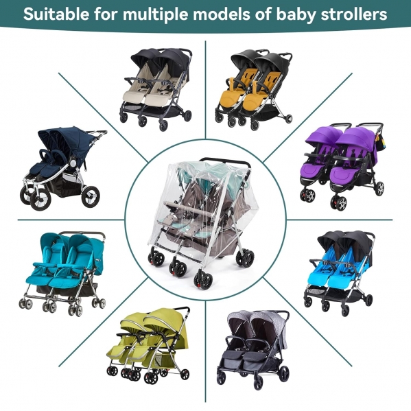 Double Stroller Rain Cover, Waterproof Weather Shield for Side by Side Baby Double Stroller, Twins Stroller Cover for Rain/Wind/Snow/Cold/Dust, Baby Outdoor Accessories