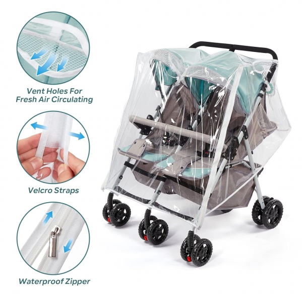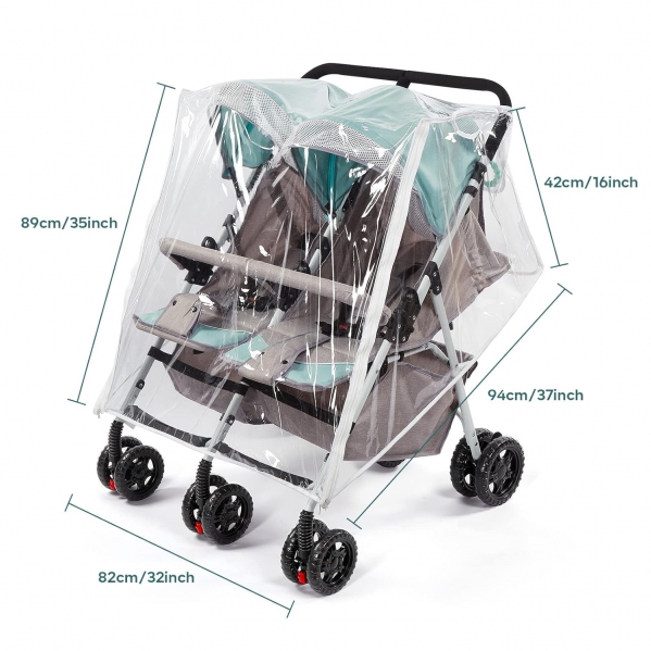 Rent Baby Gear INCLUDING Double Stroller Rain Cover, Waterproof Weather Shield for Side by Side Baby Double Stroller, Twins Stroller Cover for Rain/Wind/Snow/Cold/Dust, Baby Outdoor Accessories | BabyQuip