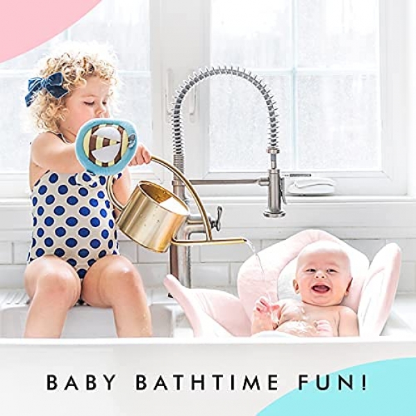 Blooming Bath Original is a plush, flower-shaped baby bath seat made of soft Minky fabric with foam petals that cradle newborns and infants in a sink or tub for a cozy, secure bath, making bath time easier and more comfortable for parents. It's known as a safe, soft, and convenient baby essential, machine washable, and designed to fit most sinks.