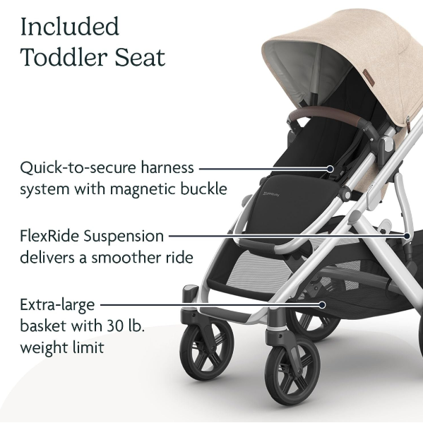 Esta carriola puede tener el accesorio de cuna para bebés recién nacidos o el asiento convertible para niños mayores que puede mirar hacia adentro o hacia afuera. La VISTA ofrece un asiento reversible, un toldo ajustable en altura, un respaldo casi plano y mucho espacio de almacenamiento. No es de extrañar que sea una de las carriolas más populares en el mercado. La cuna es adecuada desde el nacimiento hasta 20 lbs. La robusta suspensión en el marco y las ruedas de la VISTA proporciona un manejo suave sobre terrenos irregulares, mientras que un pliegue en pie de un solo paso permite entradas y salidas convenientes durante los recados. Recomendación de peso: Cuna adecuada desde el nacimiento hasta 20 libras o hasta que el bebé pueda levantarse sobre las manos y las rodillas, lo que ocurra primero. Asiento para Niños Pequeños adecuado desde 3 meses hasta 50 libras