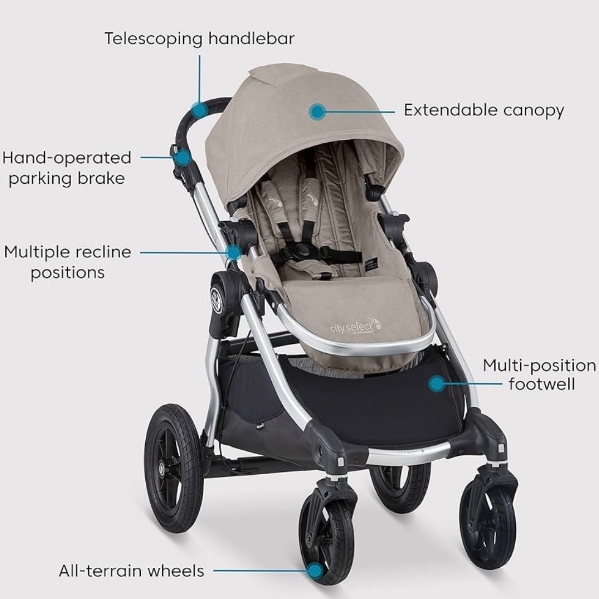 PRODUCT DESCRIPTION The City Select presents 16 unique seating combinations from double tiered car seats to a bassinet and single seat combo. And with a variety of accessory options, the City Select offers premium versatility to suit every family's comfort and needs. Whether you've just had a second child and need to add a seat, or your older child has outgrown his stroller days and you no longer need a second seat, the City Select Double Stroller converts easily to work with your changing needs as a parent. With the best double stroller on the market, all you have left to do is convince your kindergartner to stay on his feet!
