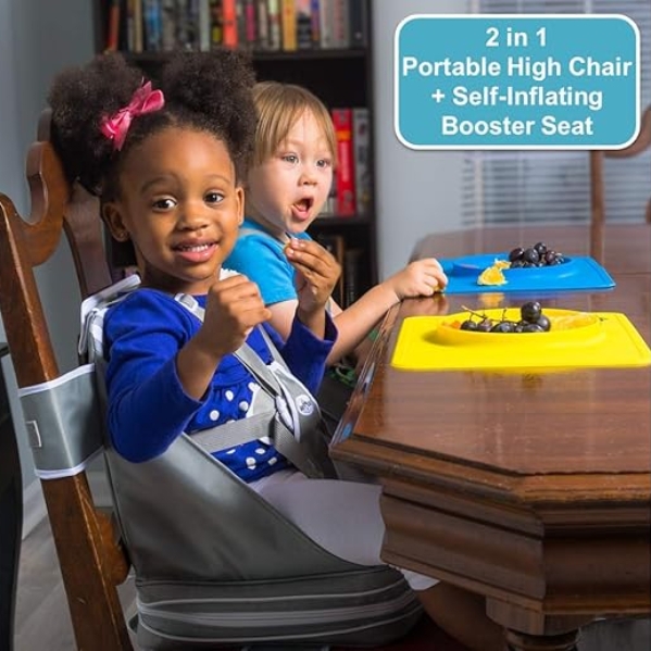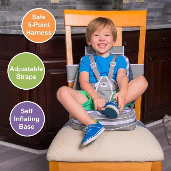 Now you can convert any adult-sized chair into a high chair with a built-in booster seat!