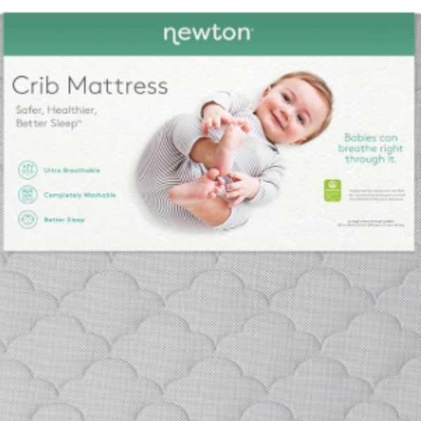 This rental includes 2 crib sheets* and a NEWTON crib mattress with a waterproof cover over it.