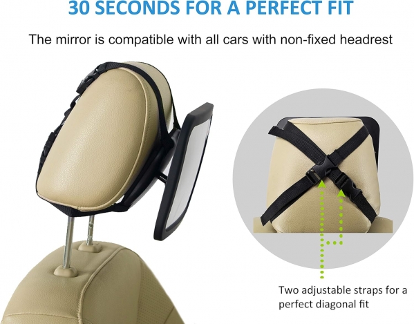 Baby Carseat Mirror for Child - Car Seat Mirrors Rear Facing Infant - Two Headrest Straps Wide View Shatterproof Fully Assembled Adjustable - Acrylic Convex Safely Monitor Newborn Toddler