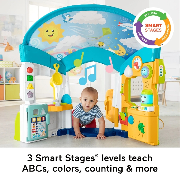 Interactive playhouse with fun lights, music, sounds, and activities inside and out for immersive, 360-degree learning play