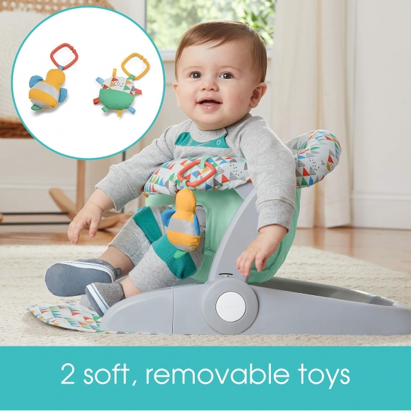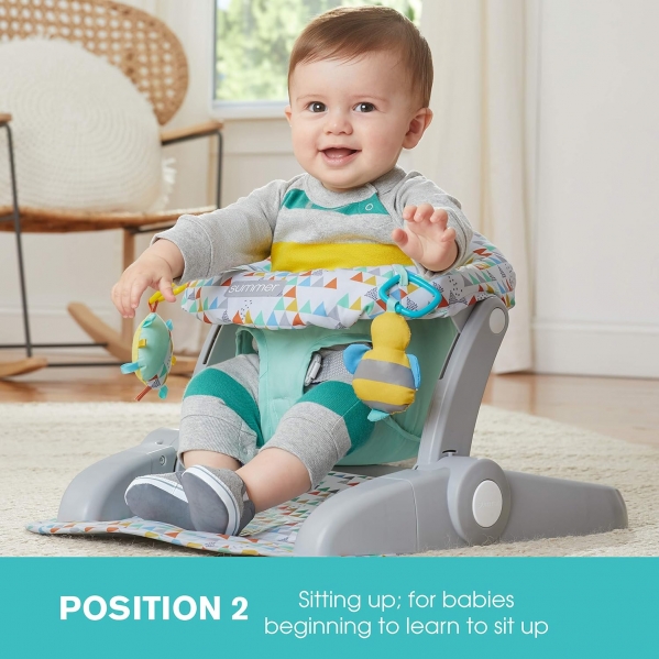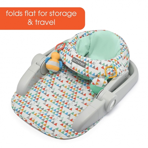 Color:Funfetti NeutralThe Summer Infant learn-to-sit 2-position floor seat is the perfect solution for baby as they develop and learn to sit up on their own. The first position sits lower to the ground and is for babies who have full neck control. As baby begins to learn to sit up, transition them to the second, higher position. Plus, this seat folds completely flat - making it perfect for storage and travel.