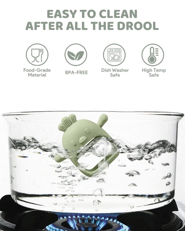 Rent Baby Gear INCLUDING Baby Teething Toy for 0-6 6-12 Months, Food Grade Silicone Teething Mitten, Anti Dropping Wrist Hand Teethers Baby Chew Toys for Sucking Needs, BPA Free (Green & Caramel) | BabyQuip