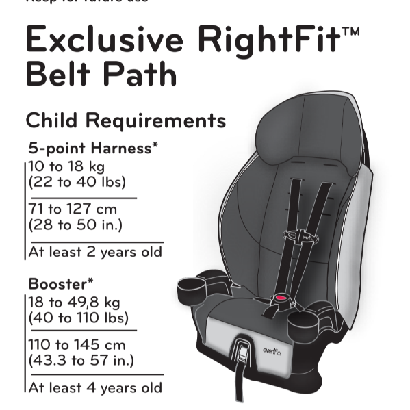 Le Evenflo Chase est un siège d'auto orienté vers l'avant avec harnais pour les enfants de 22 à 40 livres (taille : 28-50" ) qui peut également être converti en siège d'appoint avec ceinture pour les enfants de 40 à 110 livres (taille : 43-57" ). En plus de 4 positions de harnais d'épaule et 2 positions de sangle d'entrejambe, le design innovant de ce siège s'ajuste pour répondre aux besoins de votre enfant alors qu'il continue de grandir.